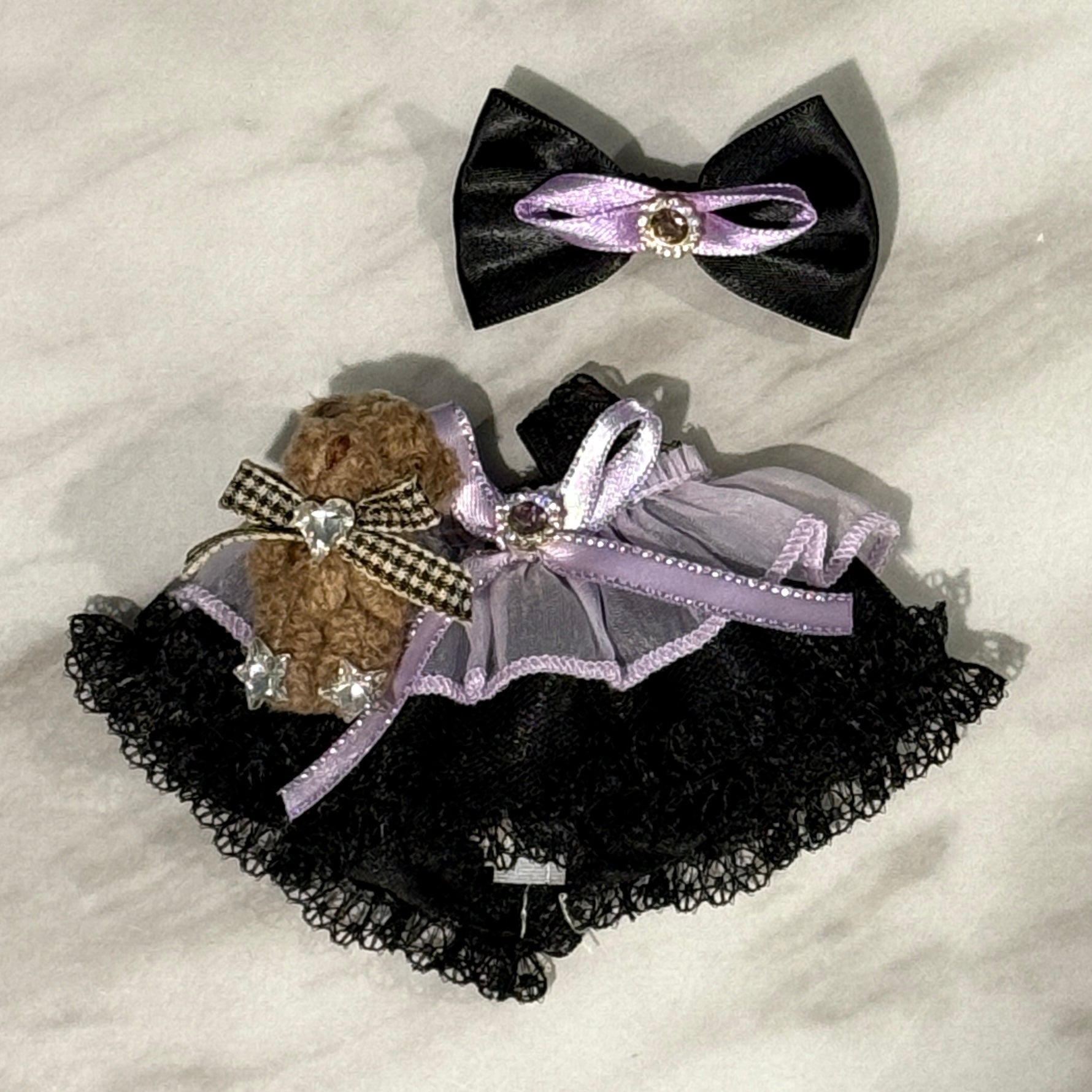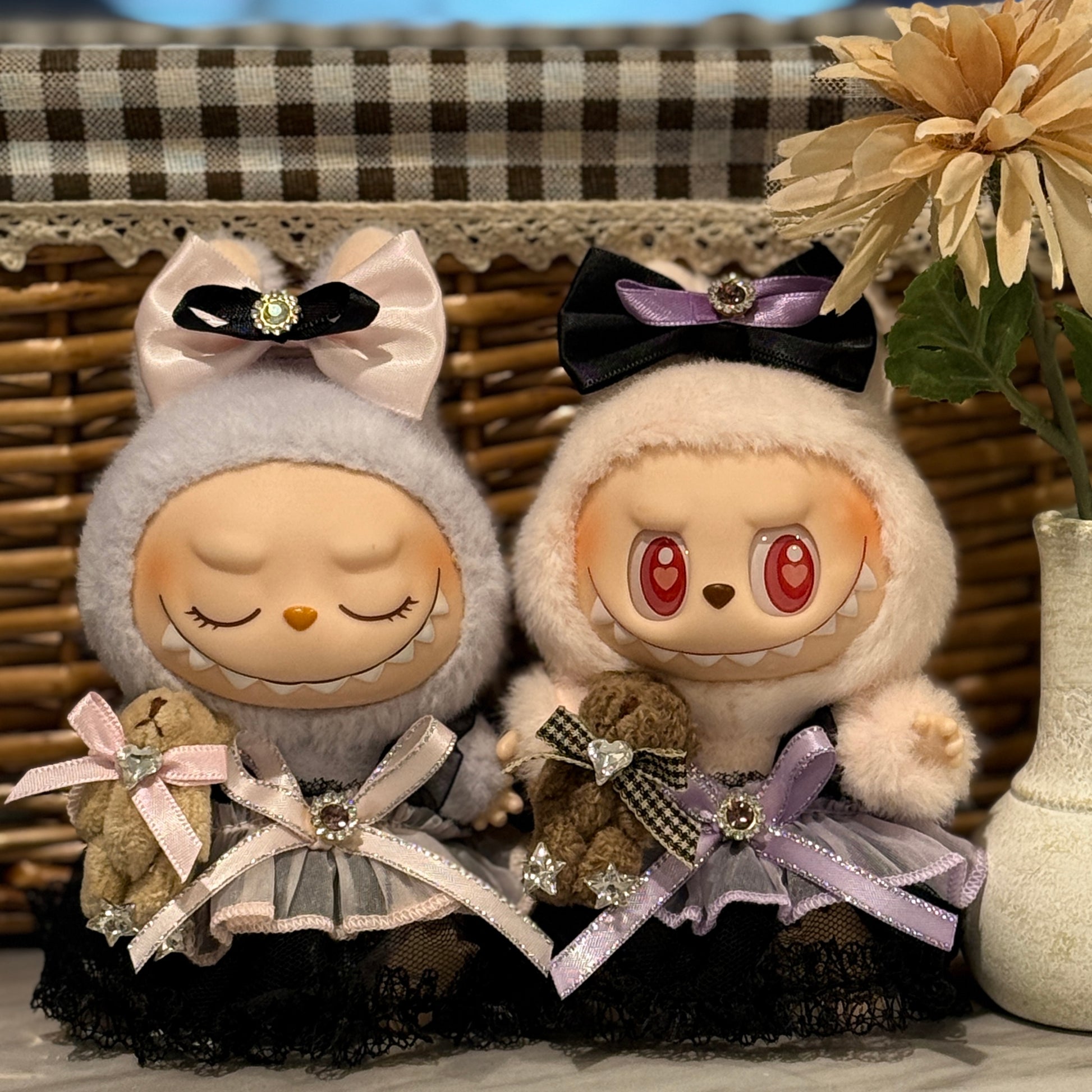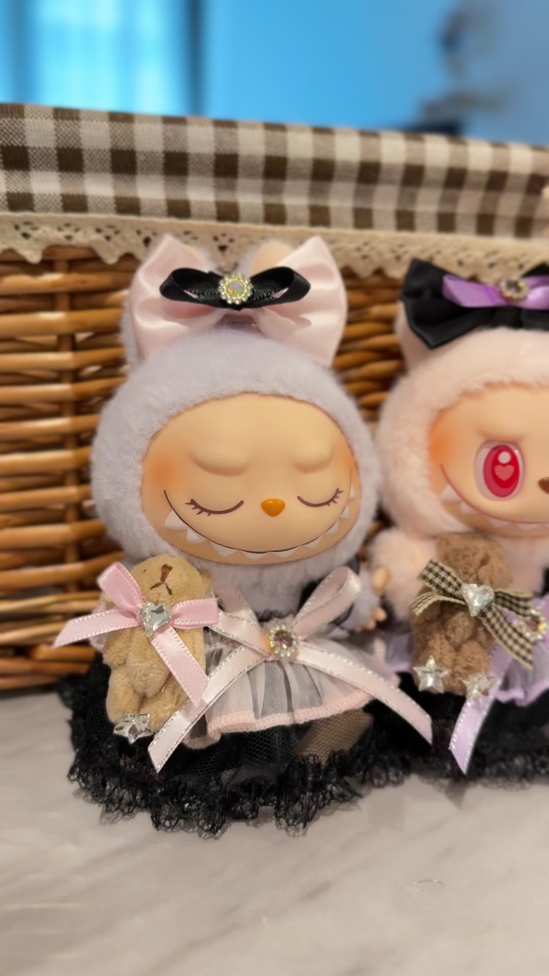 100% handmade Pop mart Labubu doll clothes summer lace dress 2 pieces in purple and pink.